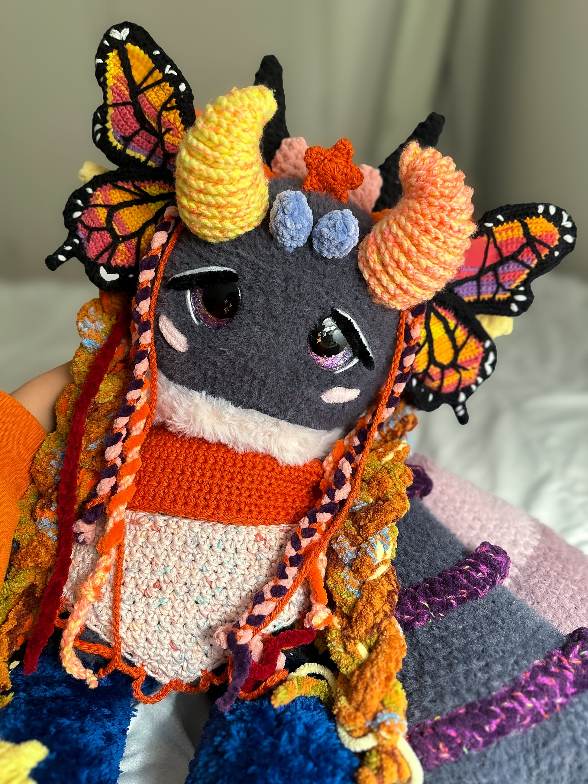 - Fully hand-crocheted and sewn pieces.